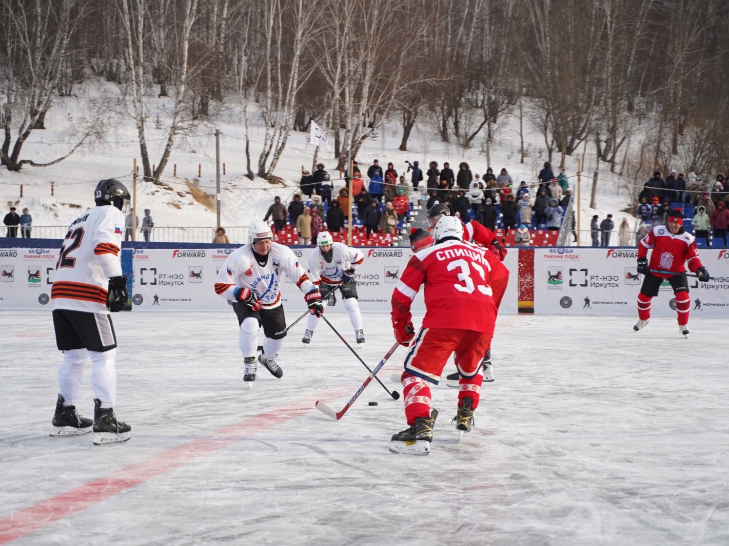 Иркутская область, НИА-Байкал – В Иркутске в районе пляжа Якоби 28 февраля состоялся товарищеский хоккейный матч между командами «Любимый Байкал» и «Легенды хоккея».