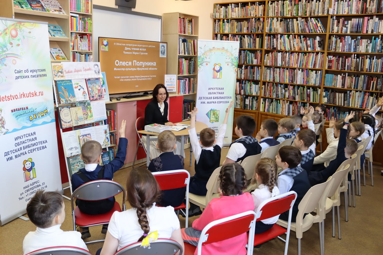 Она приурочена к столетию со дня рождения известного иркутского писателя Марка Сергеева. Его сказку в стихах «Глоток океана» прочитала министр культуры Иркутской области Олеся Полунина на открытии мероприятия на площадке организатора мероприятия, Иркутской областной детской библиотеки имени Марка Сергеева. В 42 территориях региона в акции приняли участие восемь тысяч детей. Произведения для них прочли более 870 человек. Это деятели культуры, представители органов власти, общественности, педагоги, участники СВО и члены их семей, ветераны труда, лидеры мнений, волонтеры и другие. «Мы, взрослые, читаем детям вслух сказки, рассказы и отрывки из повестей нашего известного сибирского автора Марка Давидовича Сергеева, знакомим ребят с его богатым литературным наследием, творчеством, интересными фактами биографии. Ко «Дню чтения вслух» присоединились 411 библиотек региона, работающих с детьми. Есть мнение, что чтение – это навык, который формируется у детей при активной заинтересованности взрослых. Такой важный проект помогает объединять поколения через книги и прививать любовь к чтению», – отметила министр культуры Иркутской области Олеся Полунина. В некоторых библиотеках литературная акция проходила в формате эстафеты: в течение дня один чтец сменял другого. Всего же в рамках акции провели более 900 мероприятий, были открыты книжно-иллюстративные выставки, посвященные жизни и творчеству Марка Сергеева и экспозиции детских рисунков, созданных на основе его произведений, сообщает пресс-служба Губернатора и Правительства Иркутской области. Подписывайтесь на наш канал в telegram.