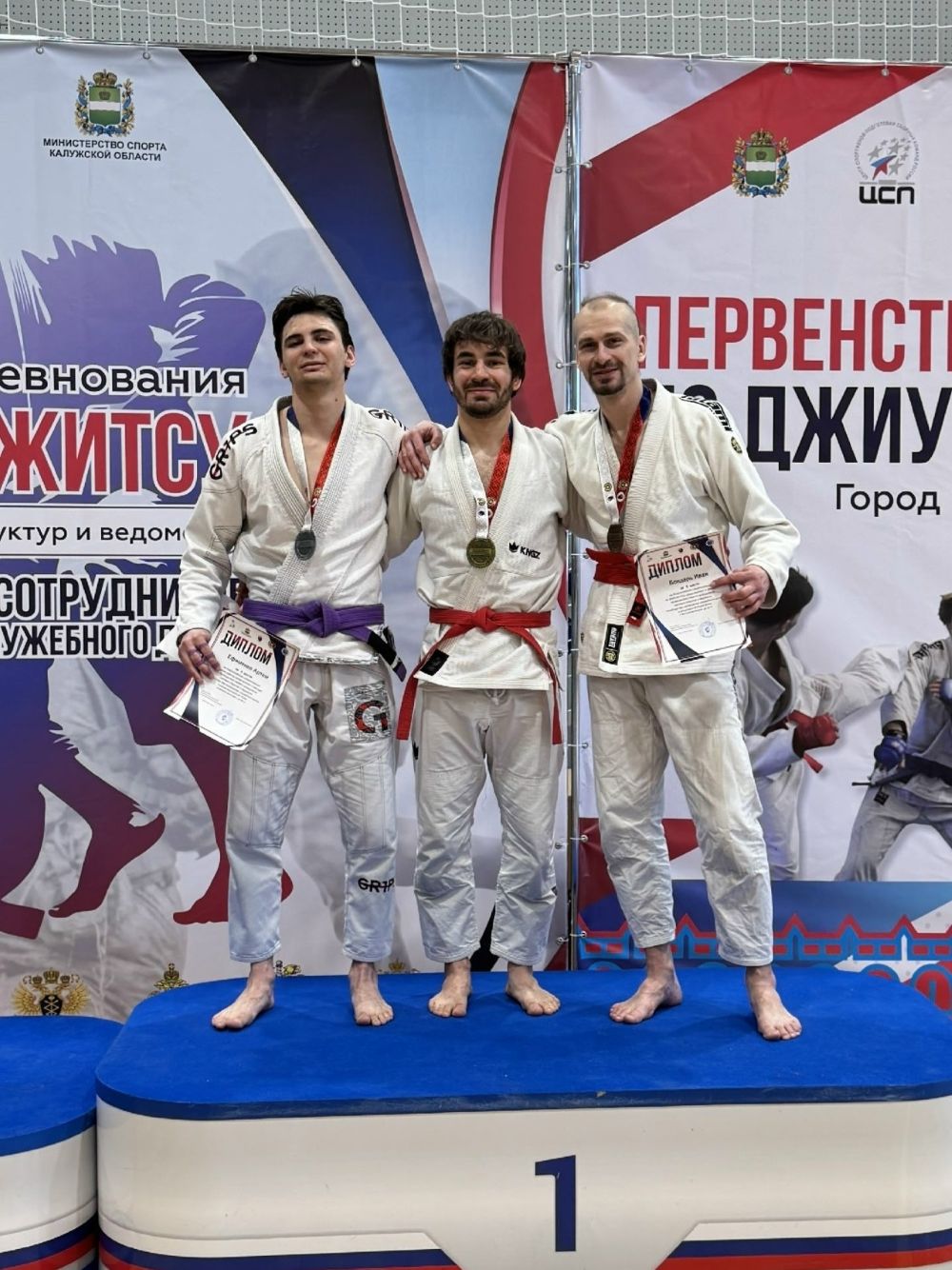 В соревнованиях приняло участие более 800 спортсменов из 47 регионов страны. На первенстве России среди юношей до 14 лет в весовой категории до 38 кг Дмитрий Сандул стал серебряным призером в дисциплине «борьба лежа» и выиграл золотую медаль в дисциплине «но ги». Спортсмен занимается под руководством тренера Николая Богданова, уточняет пресс-служба минспорта региона. Параллельно с первенством России в Калуге проходили всероссийские соревнования по джиу-джитсу, посвященные памяти сотрудников, погибших при исполнении служебного долга. Владислав Барышников стал победителем этих соревнований в весовой категории до 69 кг в дисциплине «борьба лежа». Он тренируется у Вячеслава Казакова.